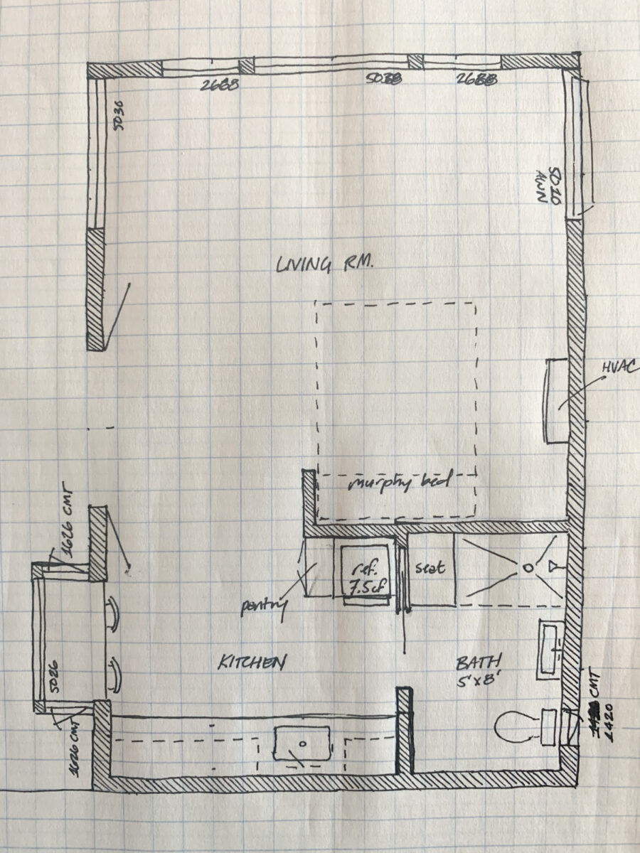 I spent months considering the layout, contemplating dozens of ideas. Every square foot serves a purpose (or three). The murphy bed doubles as a bookshelf. The bar area works as a dining room table for two. Even the porch was designed with work and energy efficiency in mind, with a covering that blocks the harsh afternoon (and heat) sun while preserving the view.