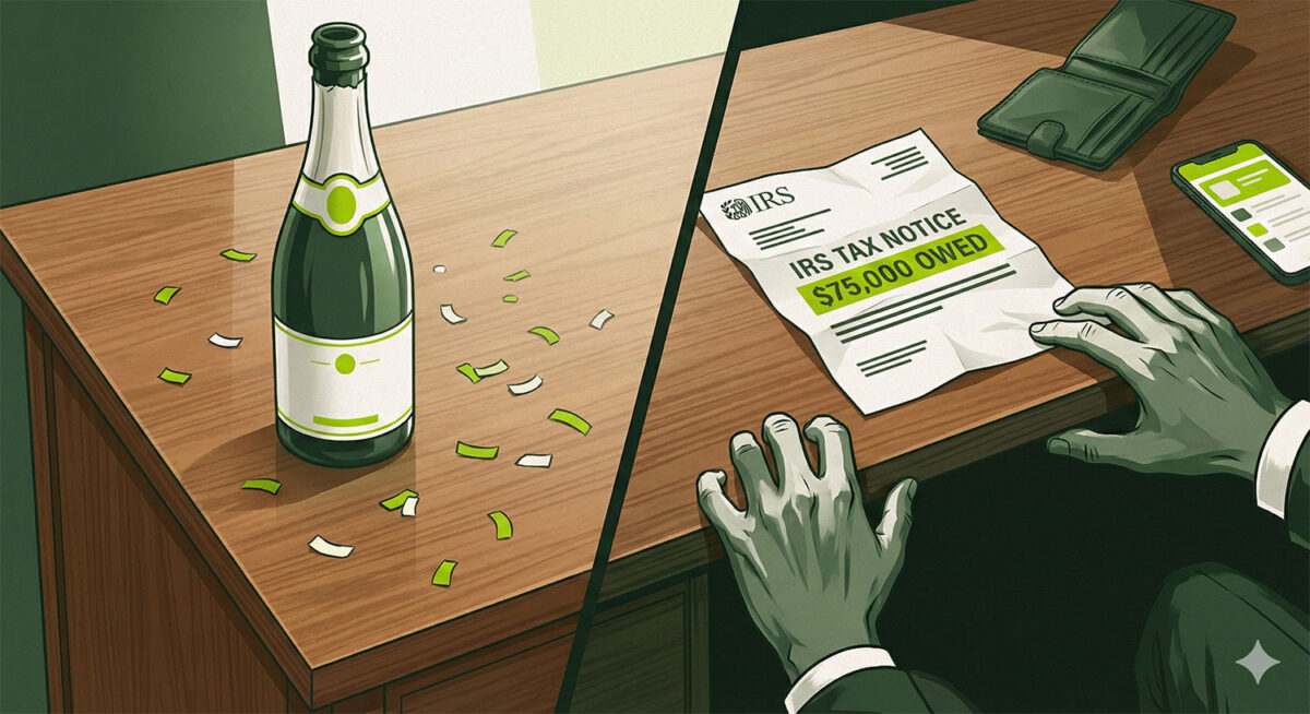 Then the IRS calls. They want taxes on your $250,000 paper profit. That’s $75,000.