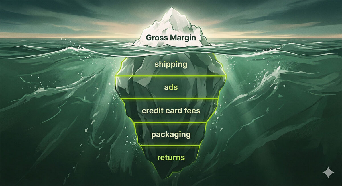 It doesn’t account for customer acquisition costs. It ignores shipping and packaging. It skips over credit card fees, returns, and all the other variable costs of actually selling and delivering that product to a customer.